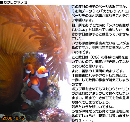 New ! カクレクマノミの繁殖記録です